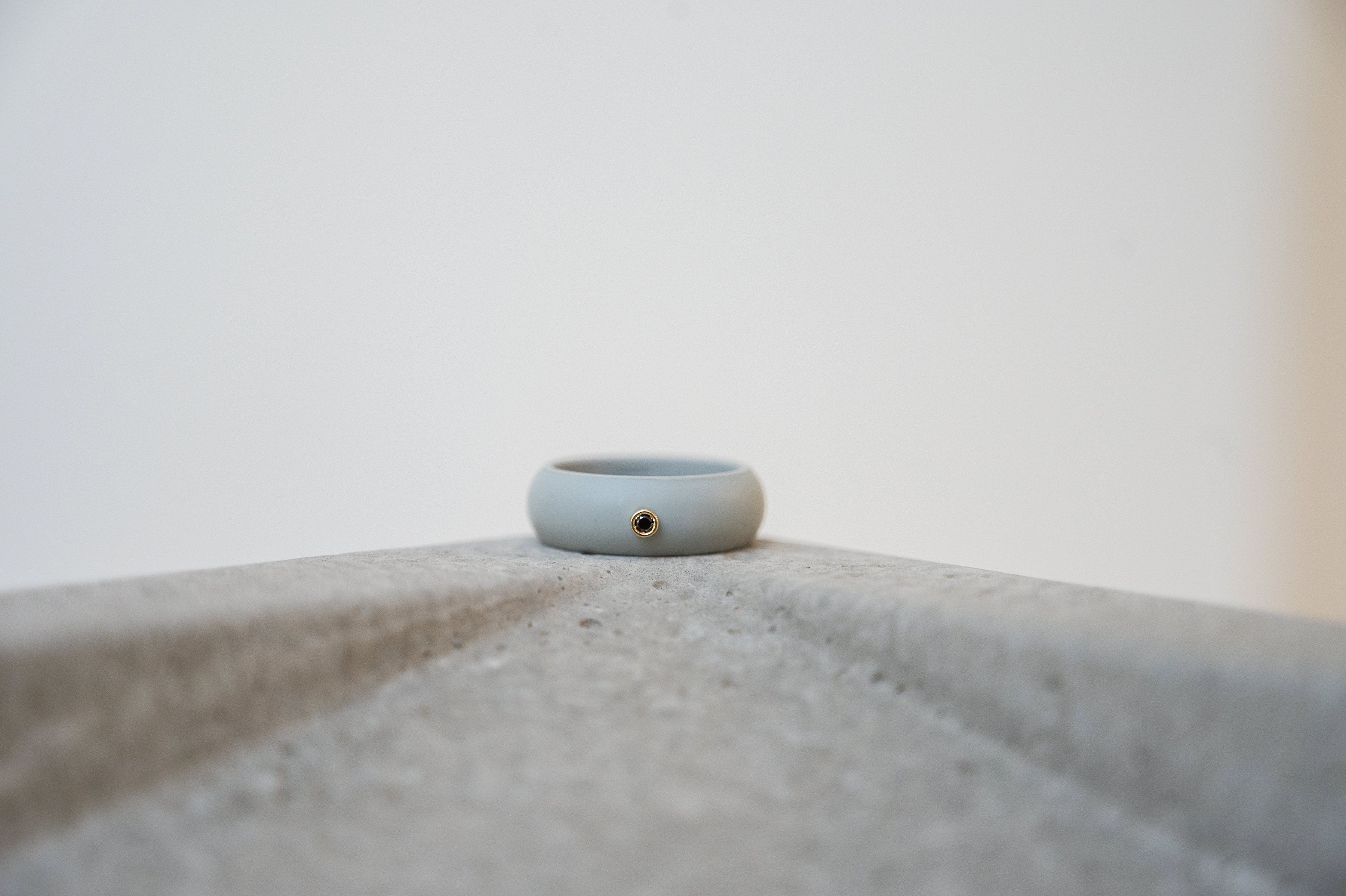 Aro na cor cinza, confeccionado em material tecnológico resistente e flexível.